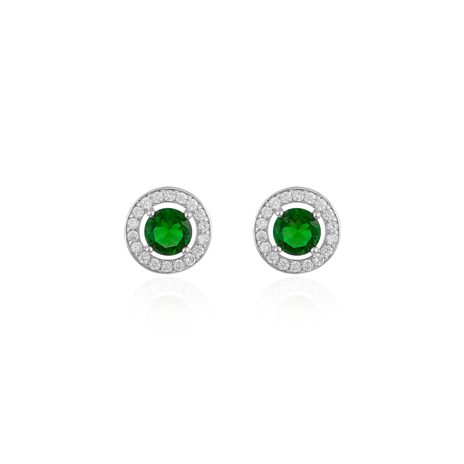 Ασημένια Σκουλαρίκια 925 “Round Emerald Rosette”