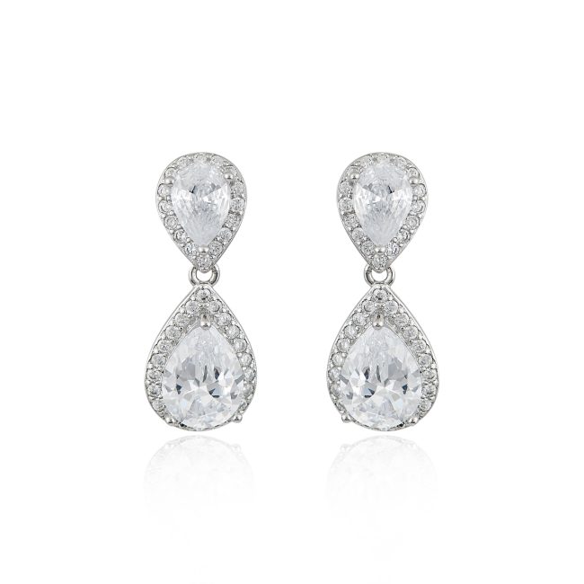 Δαχτυλίδι μονόπετρο από επιροδιωμένο ασήμι 925 με λευκές πέτρες ζιργκόν και μια μεγάλη ορθογώνια λευκή πέτρα ζιργκόν στο κέντρο.
