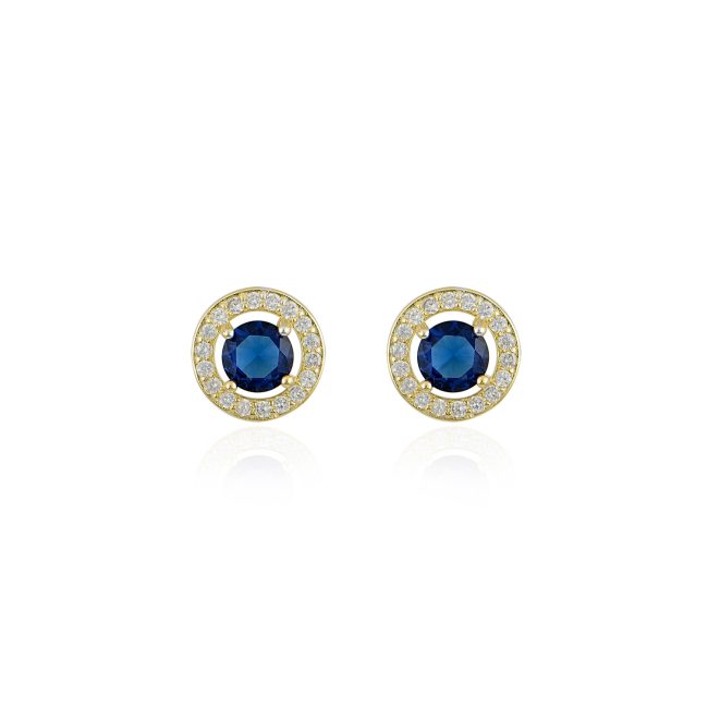 Κολιέ από επιχρυσωμένο ασήμι 925 με μια μπλε πέτρα ζιργκόν στο κέντρο και μικρότερες λευκές πέτρες ζιργκόν περιμετρικά.