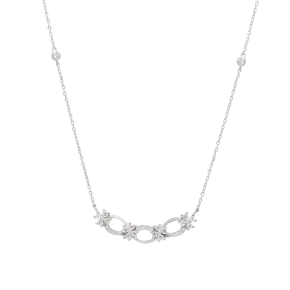 Κολιέ από επιροδιωμένο ασήμι 925 με λουλούδια και λευκές πέτρες ζιργκόν.