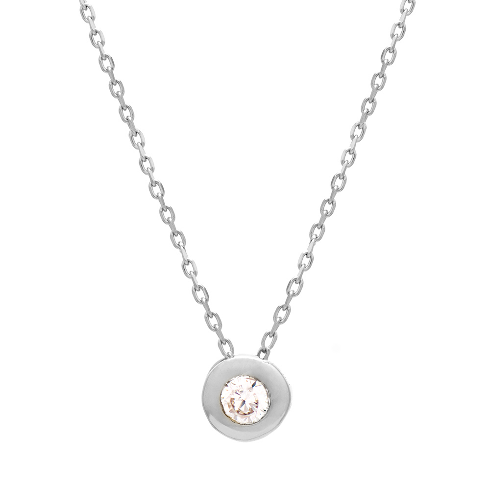 Χρυσό γυναικείο κολιέ 9 καρατίων μονόπετρο με λευκή πέτρα ζιργκόν.