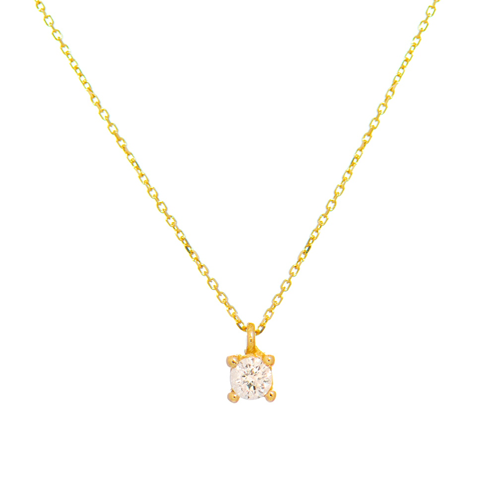Χρυσό κολιέ 9 καρατίων με τετράγωνο μοτίφ και ένα μικρό λευκό ζιργκόν.