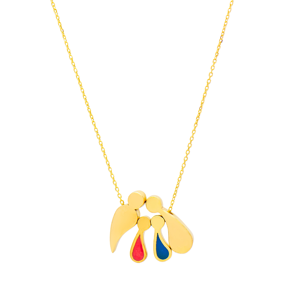 Χρυσό κολιέ 9 καρατίων οικογένεια με δυο παιδάκια, ένα αγόρι και ένα κορίτσι.