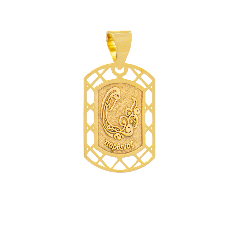Ζώδιο Παρθένος από χρυσό εννέα καρατίων σε σχήμα ορθογώνιο.