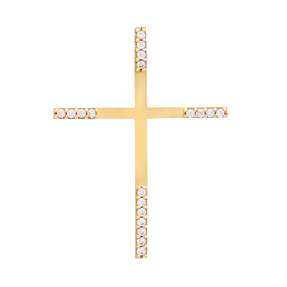 Χρυσός γυναικείος σταυρός 14 καρατίων διπλής όψεως με λευκές πέτρες ζιργκόν.