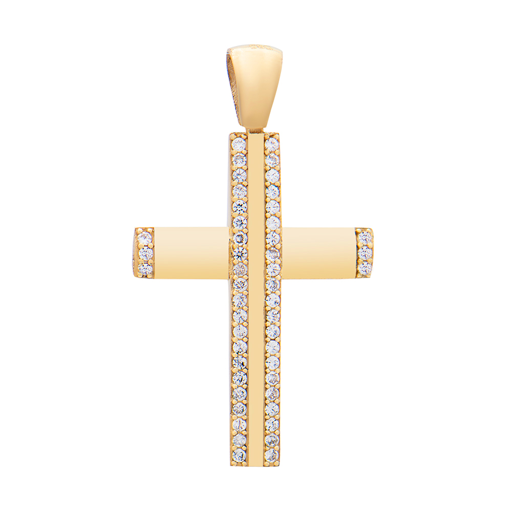 Χρυσός σταυρός 14 καρατίων στολισμένος με λευκές πέτρες ζιργκόν. Ιδανικό δώρο βάπτισης για κορίτσι.