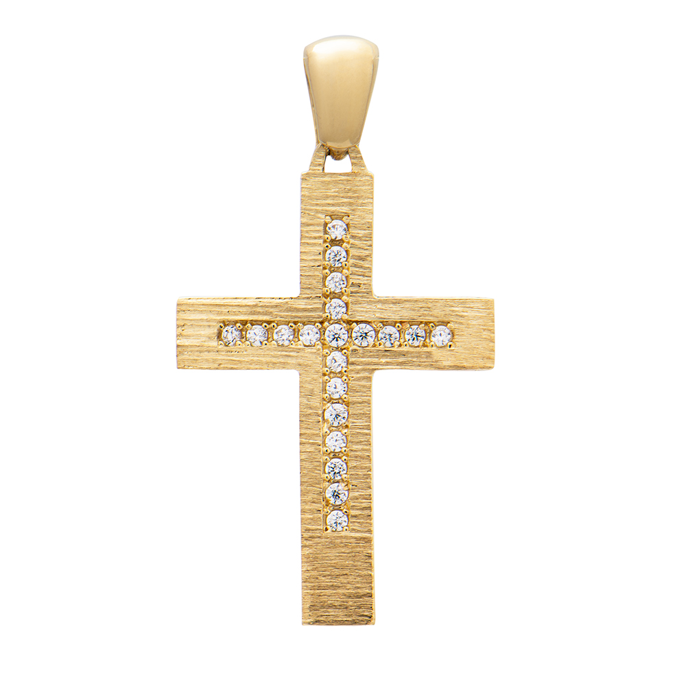 Χρυσός σταυρός 14 καρατίων στολισμένος με λευκές πέτρες ζιργκόν. Ιδανικό δώρο βάπτισης για κορίτσι.