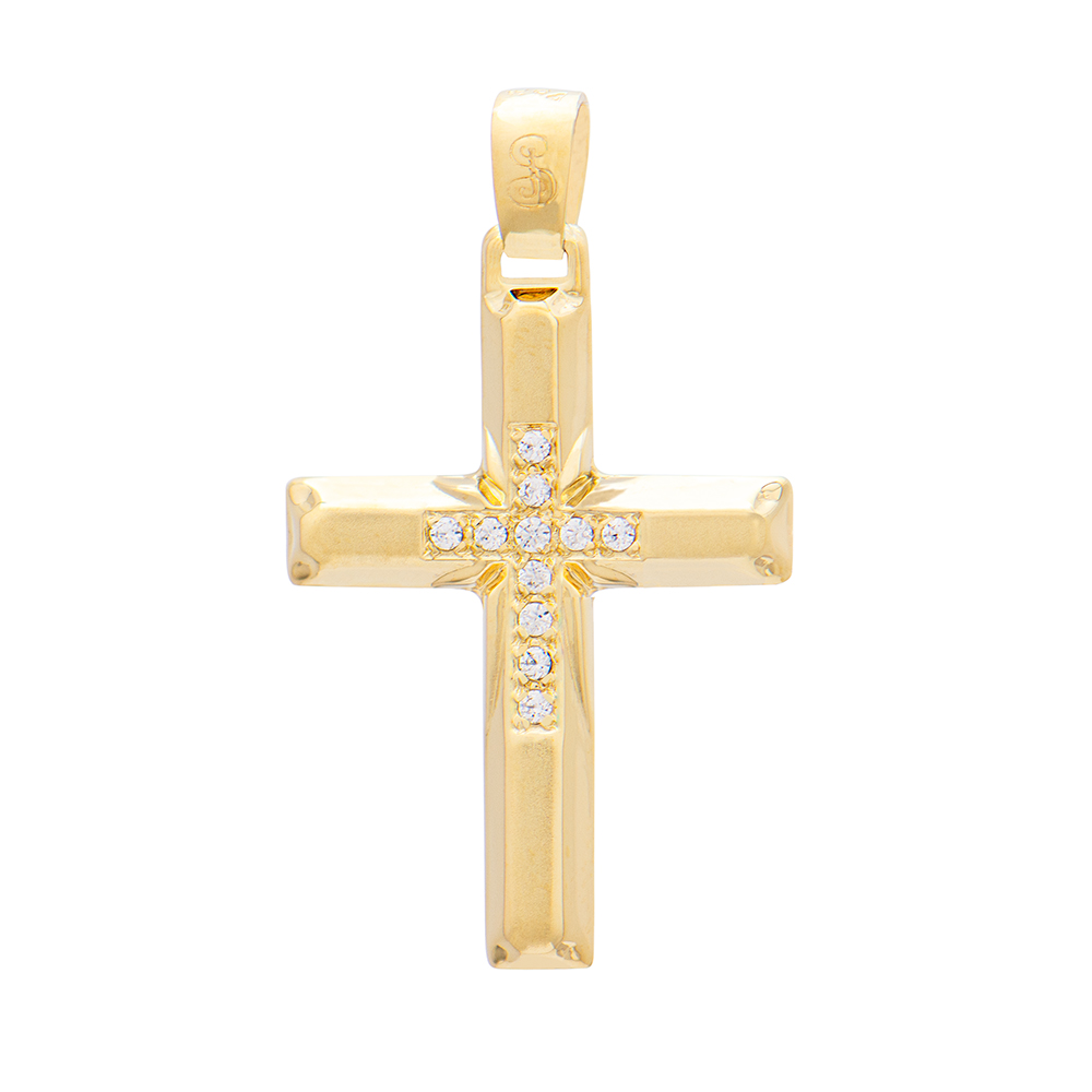 Χρυσός γυναικείος σταυρός 14 καρατίων με λευκές πέτρες ζιργκόν. Ιδανικό δώρο βάπτισης για κορίτσι.