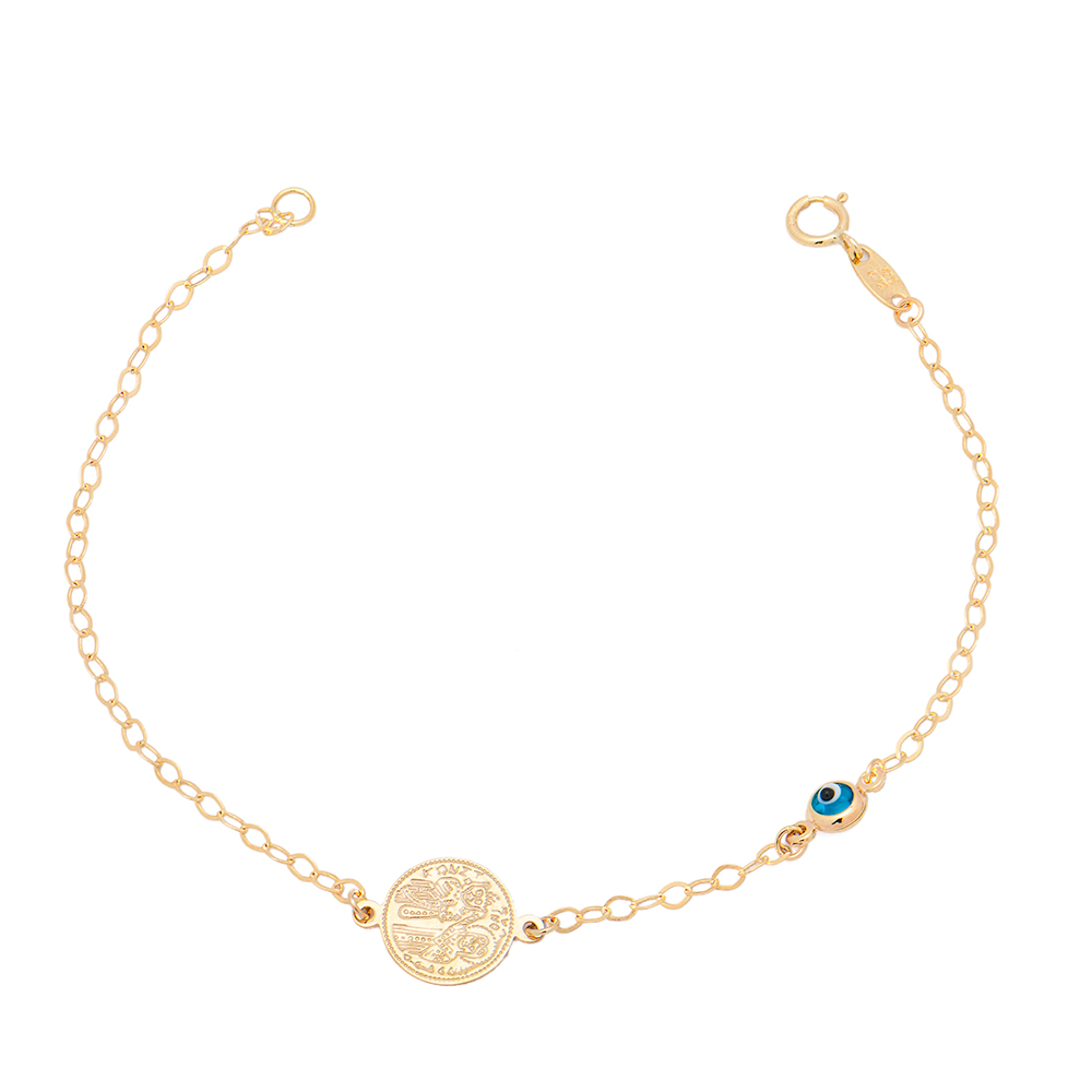 Gold bracelet K9 Christian Charm with blue eye