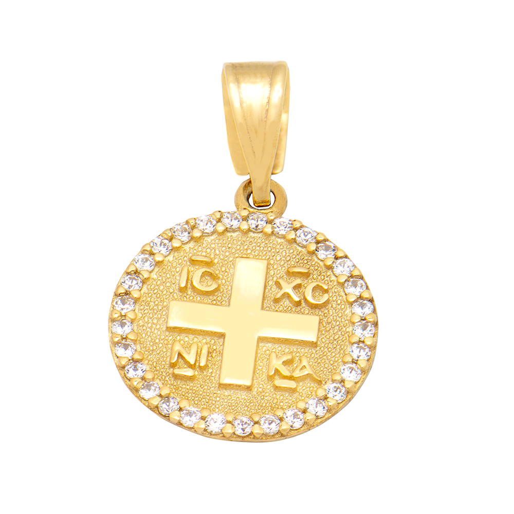 Gold Christian Charm K9 round with perimeter zircon