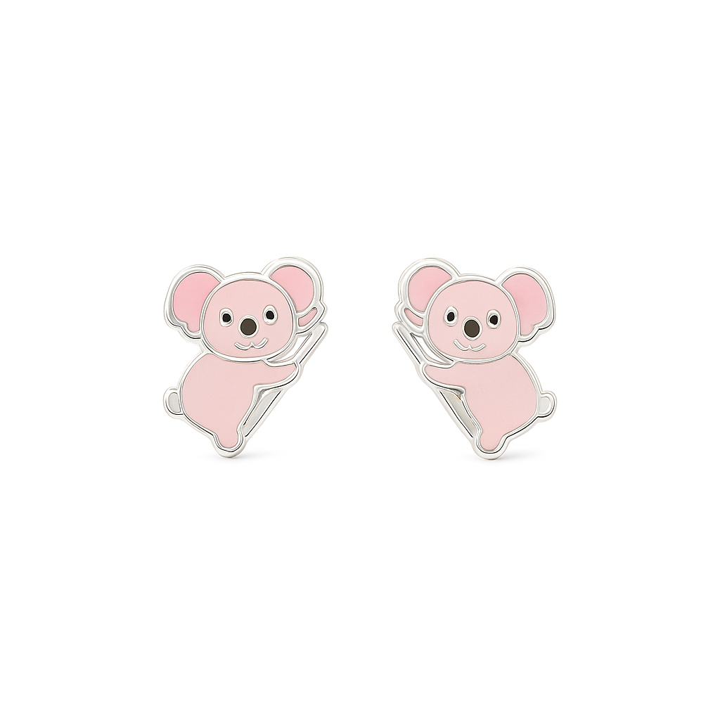 Ανακαλύψτε τα πιο γλυκά σκουλαρίκια της συλλογής μας! Τα Koala Hugs είναι φτιαγμένα από ασήμι 925° και διακοσμημένα με ροζ σμάλτο, αποτυπώνοντας τη χαριτωμένη φιγούρα ενός κοάλα που αγκαλιάζει κλαδάκι. Είναι ιδανικά για μικρά κορίτσια που αγαπούν τα ζωάκια και τα χαρούμενα χρώματα.