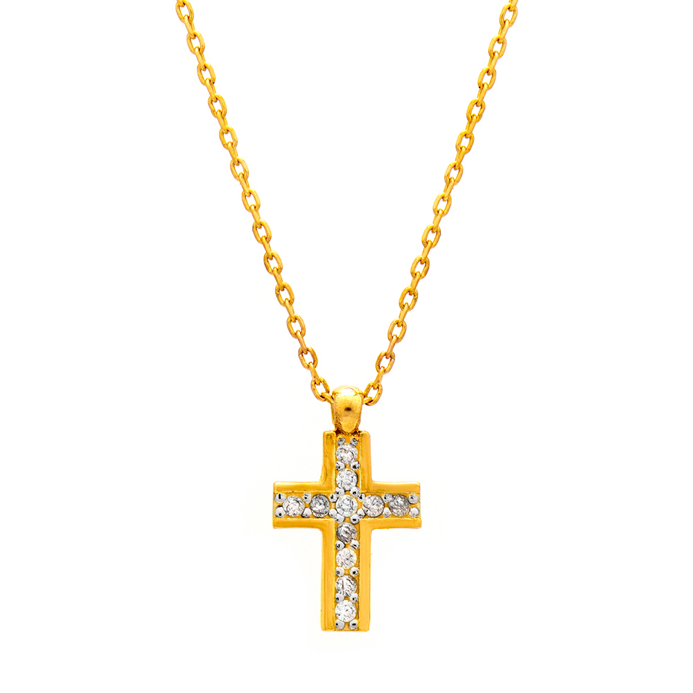 Κολιέ χρυσό Κ14 Σταυρός με ζιργκόν.