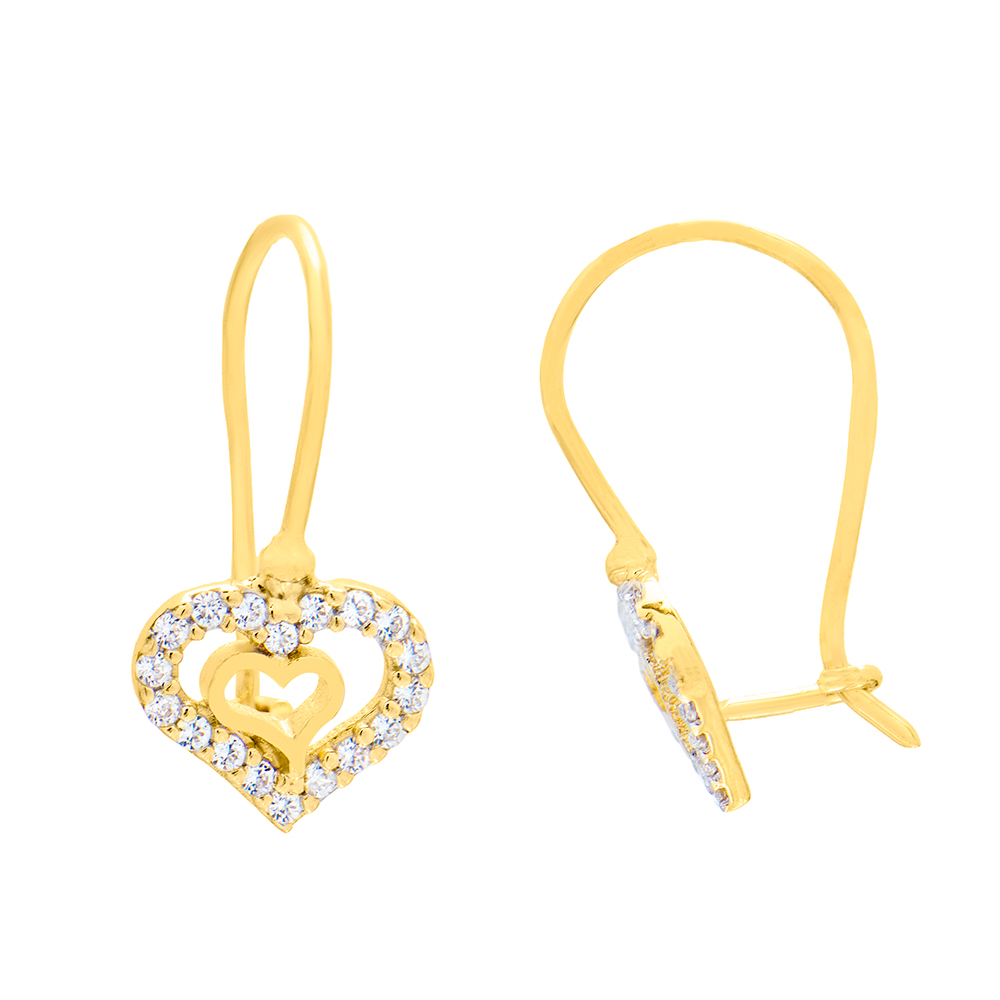 Χρυσά Σκουλαρίκια Κ14 Καρδιά με Ζιργκόν