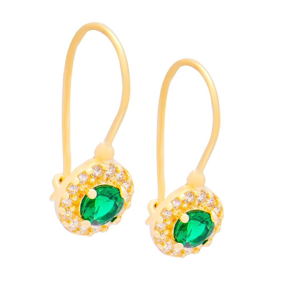 Χρυσά Σκουλαρίκια Κ9 Ροζέτα με Πράσινο Ζιργκόν