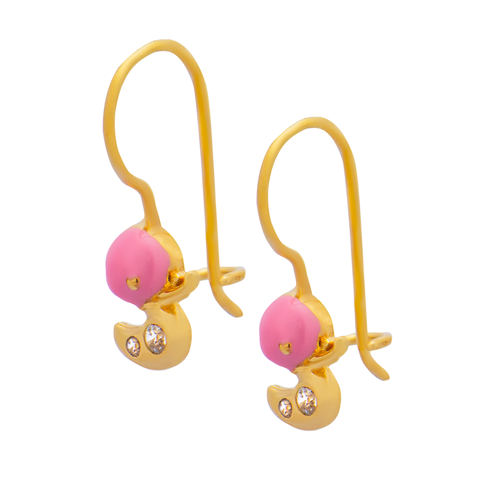 Σκουλαρίκια χρυσά 9 καρατίων παιδικά κρεμαστά σμάλτο ροζ παπάκι.
