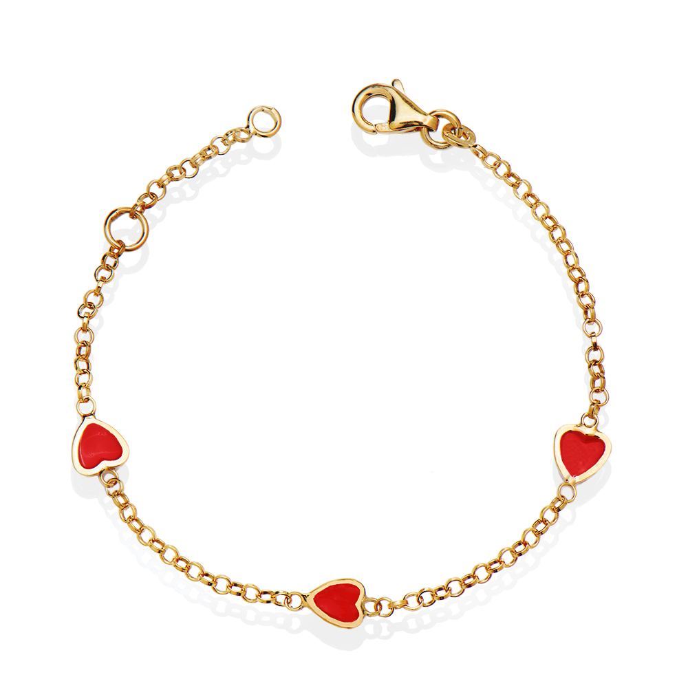 Ασημένιο βραχιόλι 925 επιχρυσωμένο διακοσμημένο με τρεις καρδιές από κόκκινο σμάλτο.