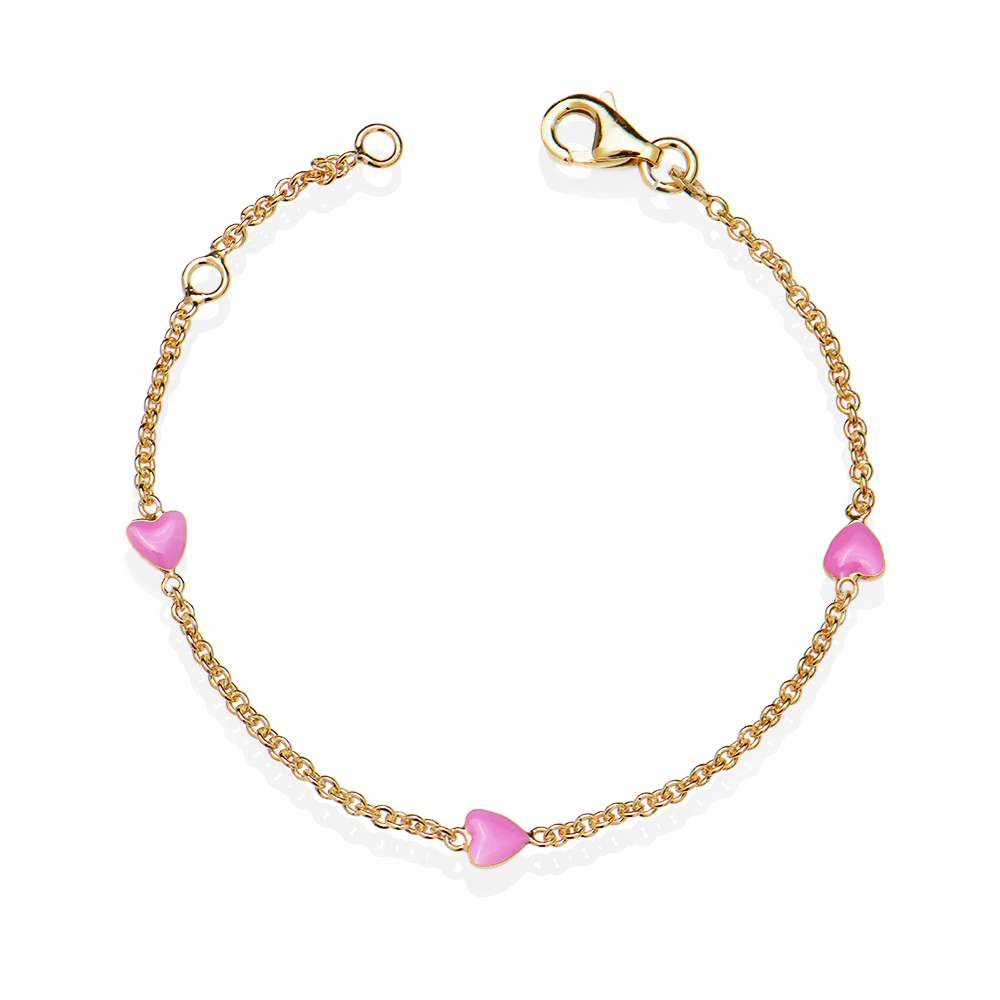 Ασημένιο βραχιόλι 925 επιχρυσωμένο διακοσμημένο με τρεις καρδούλες από ροζ σμάλτο.