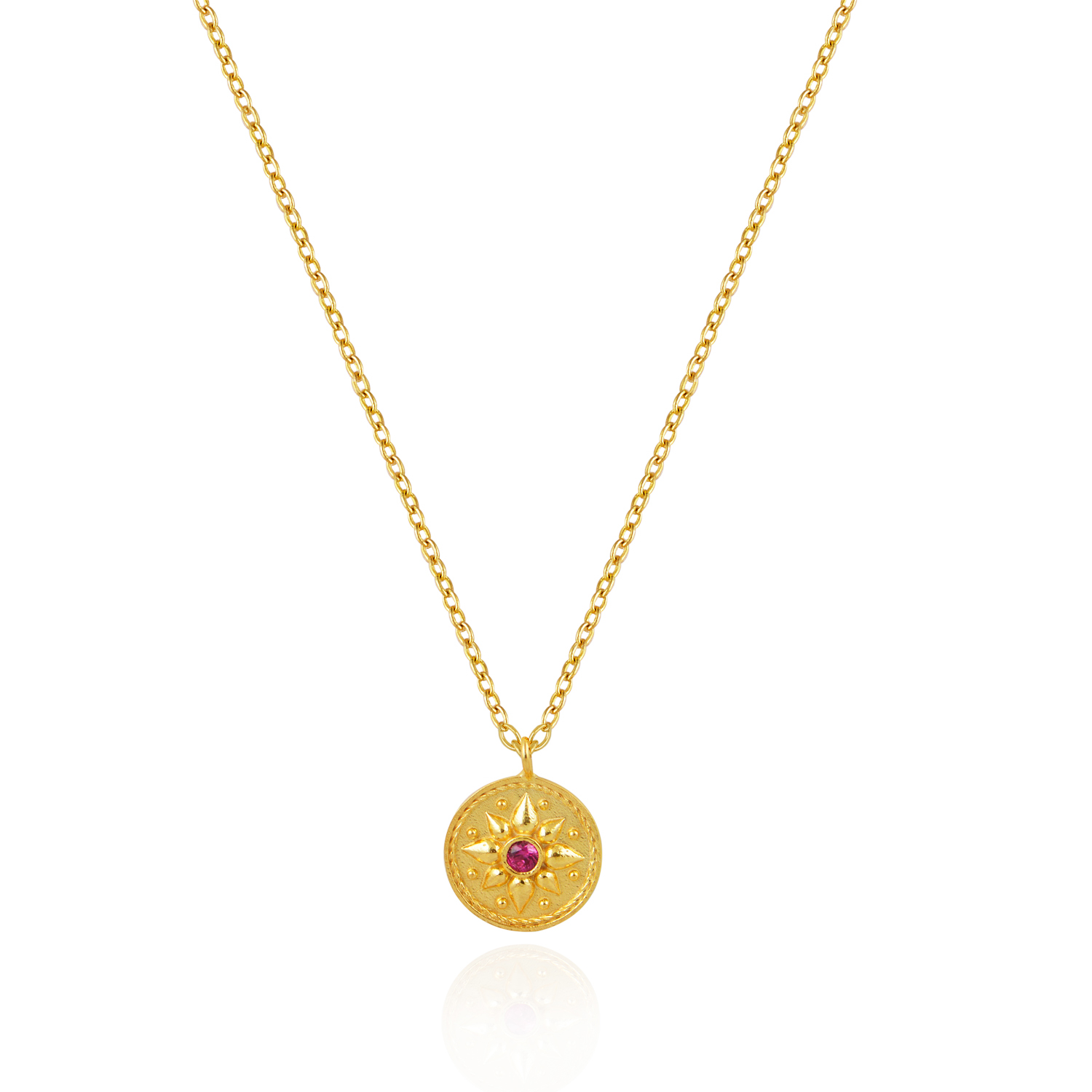 Κολιέ βυζαντινό από επιχρυσωμένο ασήμι 925 σε στρογγυλό σχήμα με ρουμπινί πέτρα ζιργκόν